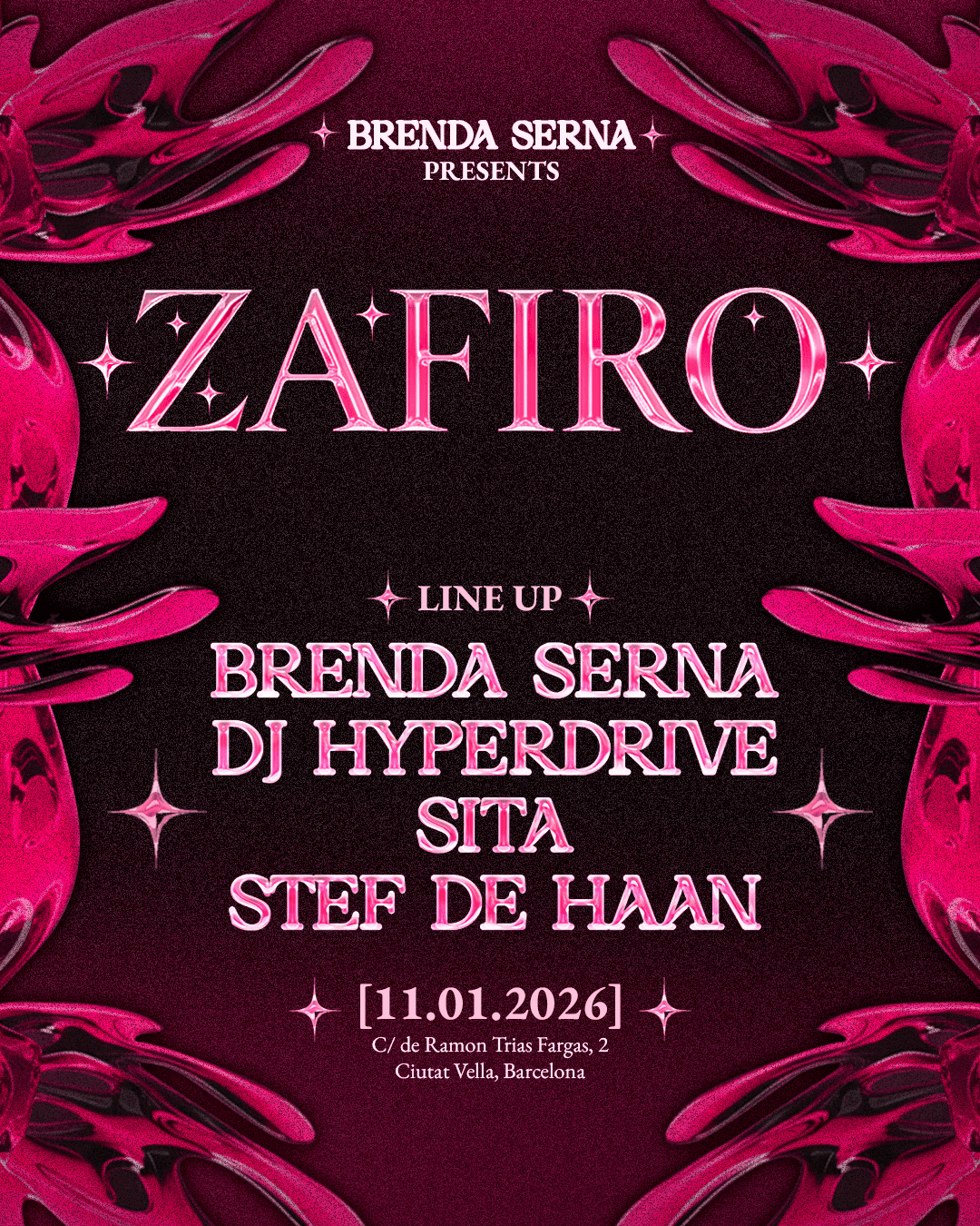 Zafiro, the signature concept by Brenda Serna, brings a bold fusion of elegance, sensuality, and high-voltage club culture to Ku Barcelona. The night unfolds through Brenda’s magnetic sound alongside DJ Hyperdrive, Sita, and Stef De Haan, each adding their own edge to a journey shaped by groove, emotion, and underground intensity. Zafiro stands as a celebration of empowerment and artistic expression, transforming the dance floor into a vivid, immersive universe of movement and energy.