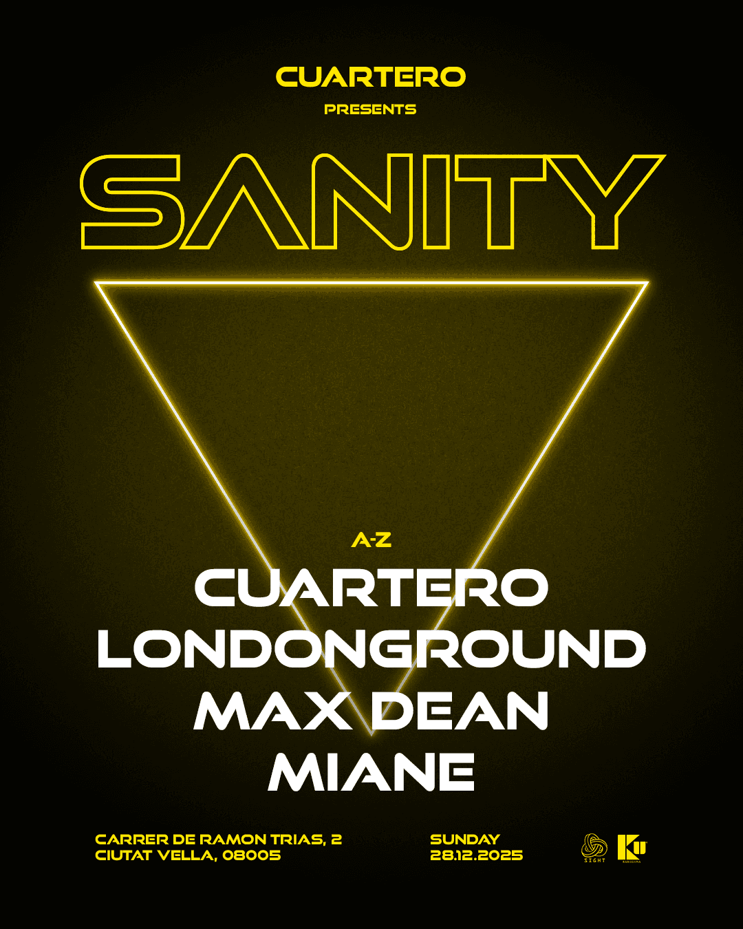 When SIGHT joined forces with SANITY, the result was a night defined by groove, character, and pure underground intensity. With Cuartero and Max Dean leading the lineup, the dance floor of Ku Barcelona became a meeting point for cutting-edge minimal sounds and infectious rhythms. The collaboration captured the essence of two influential brands coming together — powerful, immersive, and unmistakably rooted in the spirit of electronic culture.
